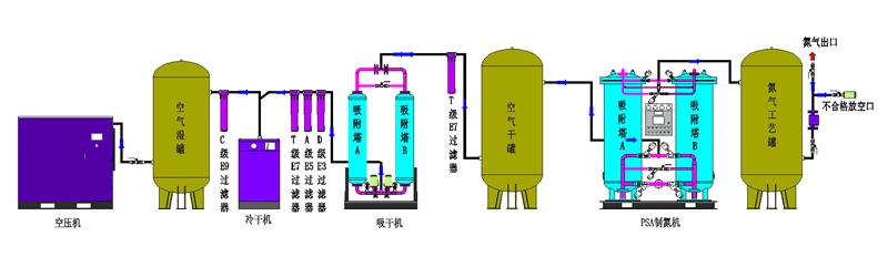 3. 去除污染物:制氮機(jī)可以去除空氣中的水分、氧氣和其他污染物,保證生產(chǎn)過程中的純度要求,從而保證產(chǎn)品的質(zhì)量。